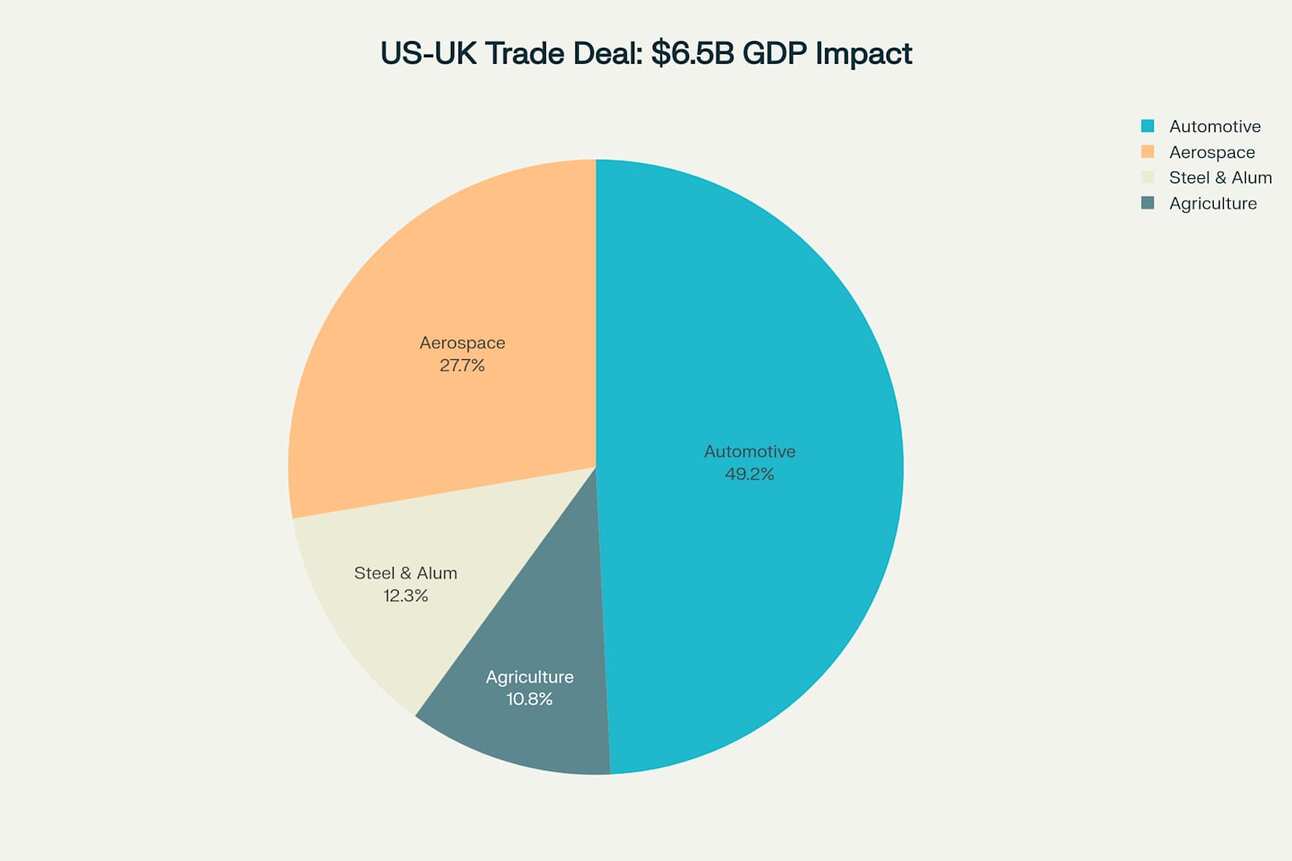 The agreement's significance extends far beyond bilateral trade statistics, creating substantial economic multiplier effects across interconnected global supply chains. University of Birmingham economists project the deal will reduce overall economic damage from tariffs by approximately 60%, saving the UK economy £6.5 billion by 2030 while protecting an estimated 137,000 jobs.