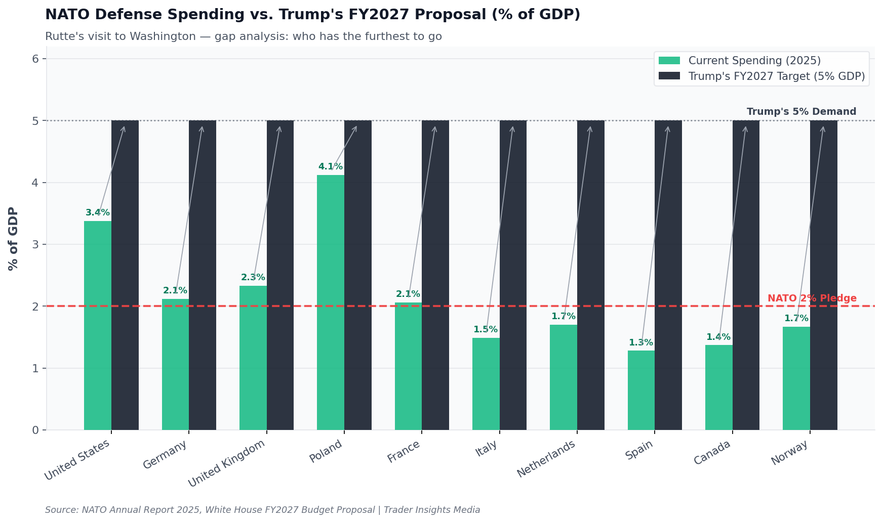 5% of GDP is Trump's FY2027 NATO spending demand, more than double the current 2% floor.