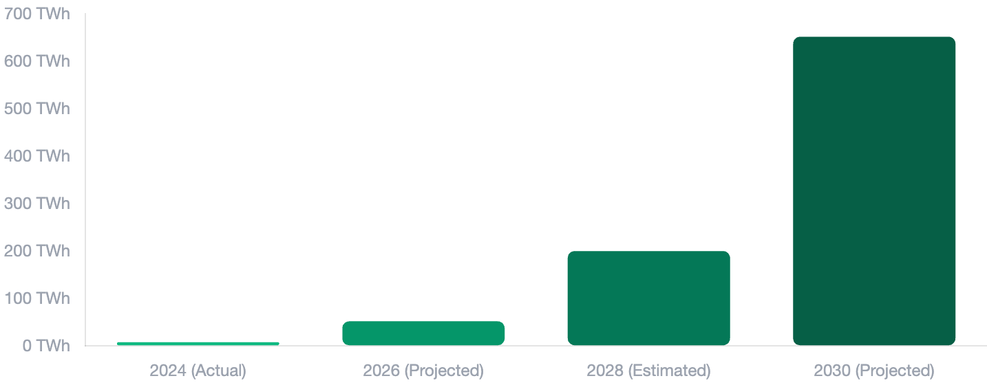 Wells Fargo projects AI power demand surges 550% by 2026 — from 8 TWh to 52 TWh — and another 1,150% to 652 TWh by 2030. That's not a trend. That's a structural shift.