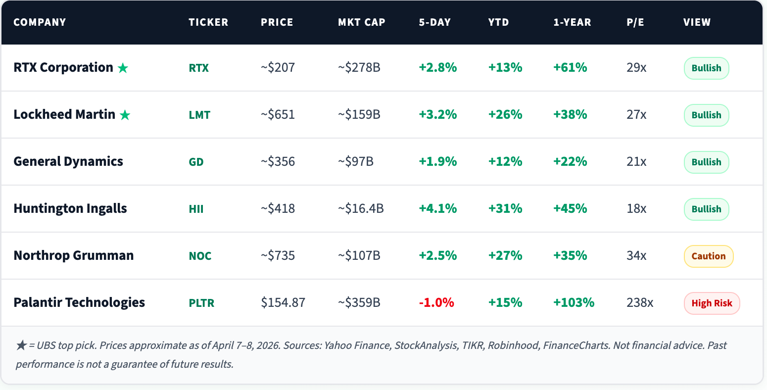 Defense stocks are already rallying. RTX, LMT, GD, HII are the Wall Street picks. But Congress rejected most of Trump's FY2026 cuts, and they may do it again.
