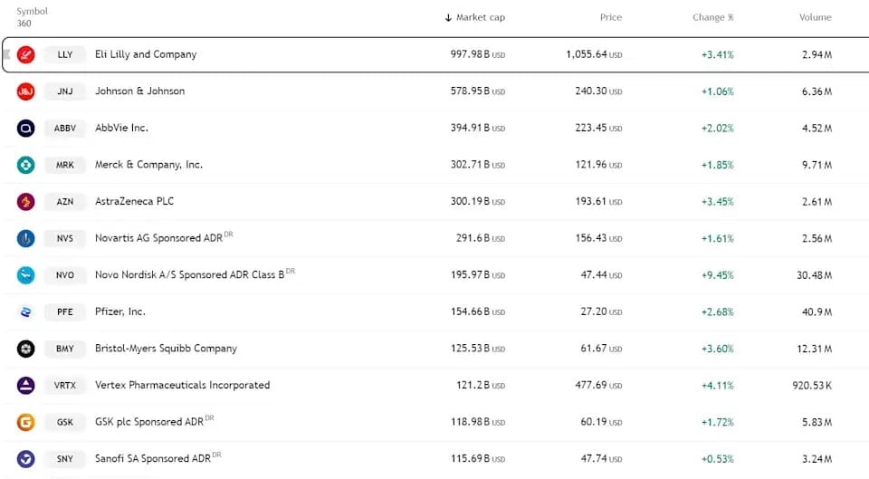 Pharma stocks are mixed. Companies partnering with TrumpRx (Novo Nordisk, Pfizer, Eli Lilly) are seeing volume increases. That's good for revenue.